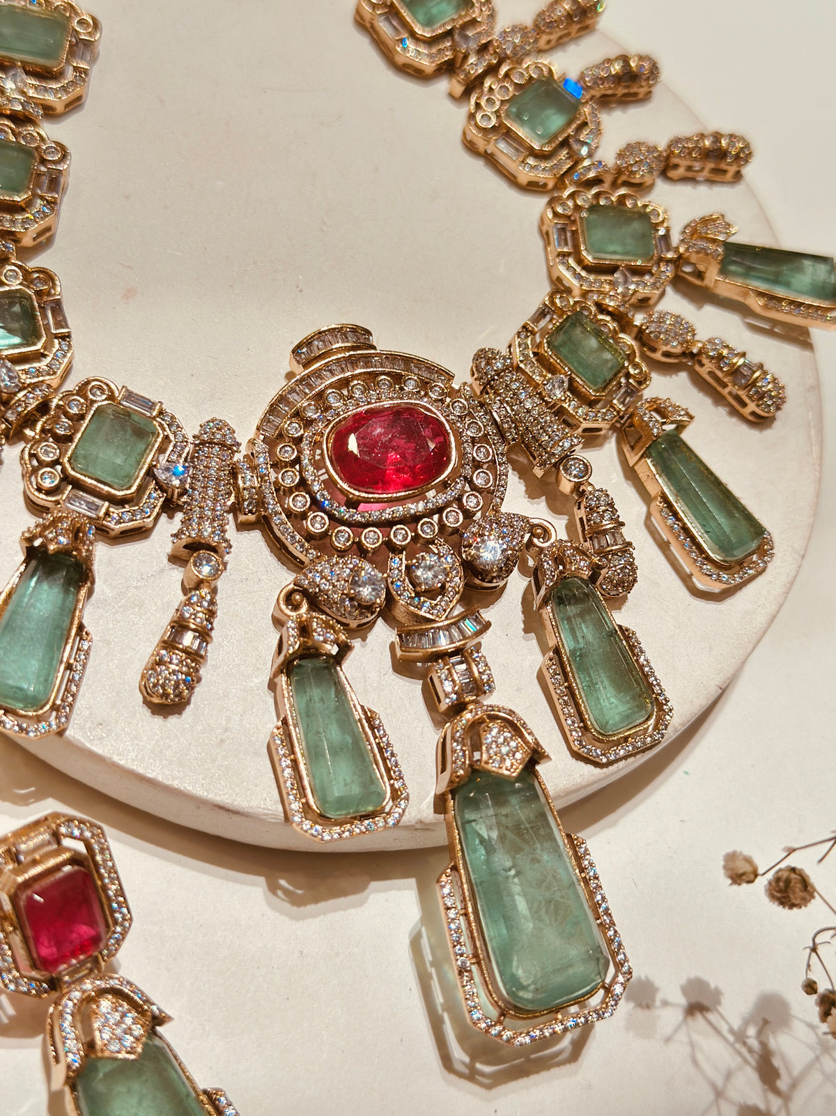 Sunaina Mint & Ruby Doublet and American Diamonds studded Jewellery Set